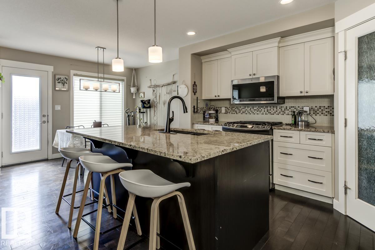 One of the LARGEST duplex in the area-NO CONDO FEES! As you enter this AIR-CONDITIONED home take note of the spacious front entry, large enough for everyone! Then check out the open-concept main floor, SS appliances, pretty backsplash, GRANITE counters, massive ISLAND, white cabinetry & large CORNER PANTRY! The kitchen flows seamlessly into the bright dining area with patio doors leading to the back yard, perfect for those summer BBQs – NATGAS hookup too! The living room has a gas FIREPLACE ideal for family...